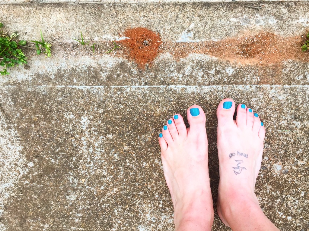 Her feet tingle with childhood memories. Running down the street chasing the music of the ice cream truck, the bottom of her feet painted the color of asphalt. Swinging as high as she could, feet dragging through dusty dirt matching the creaky cadence of the old swing set. Her toes carefully wrapped around corners of slick rocks as cool water rushes between them while playing in the creek behind her great aunt’s home. Tenderly flattening her feet across the gravel drive at her parents’ house hoping not to catch a sharp piece.